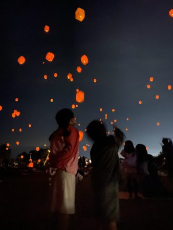 陽もすっかり落ち、メインイベントのスカイランタン打ち上げでは、それぞれが願いを込めたランタンが夜空を舞い、その様子は幻想的で言葉を失うほど美しかったです。